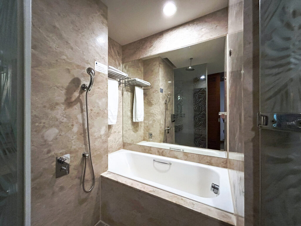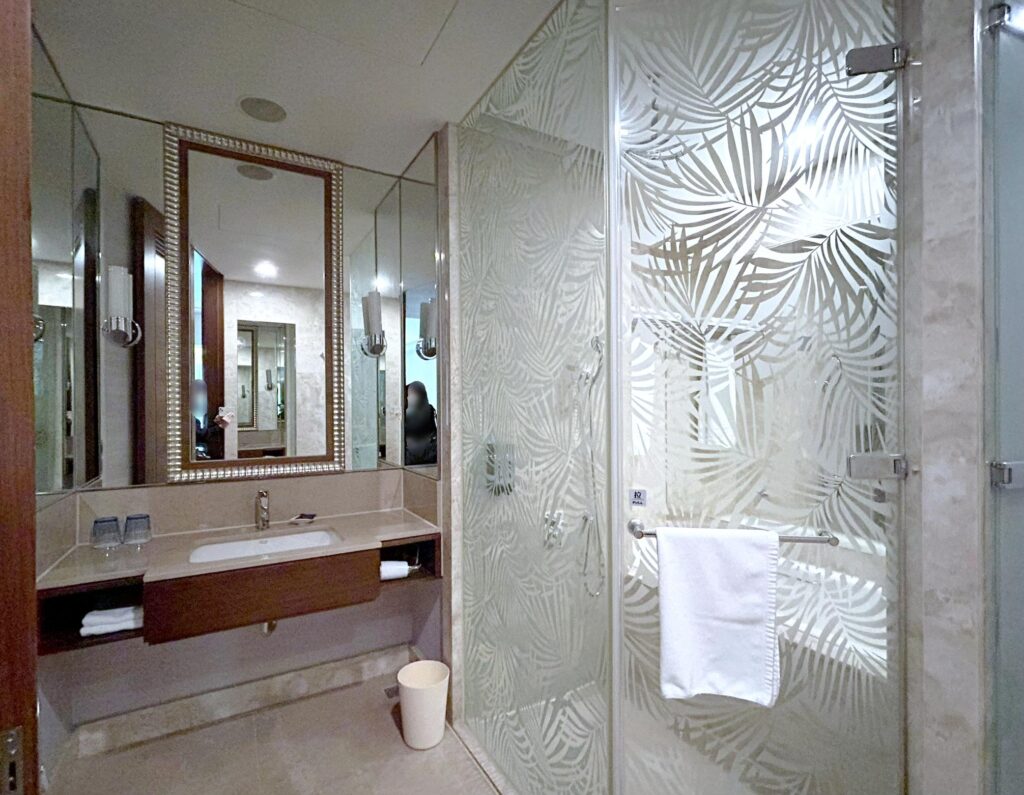このホテルは宿泊者は無料の大浴場もあるし、お部屋のバスルームもバスタブと洗い場がちゃんと別になっているので日本と同じスタイルで本当に使いやすい。