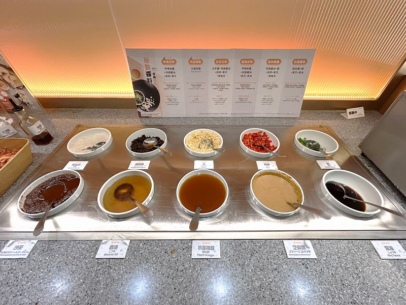 火鍋のタレとトッピングコーナー。